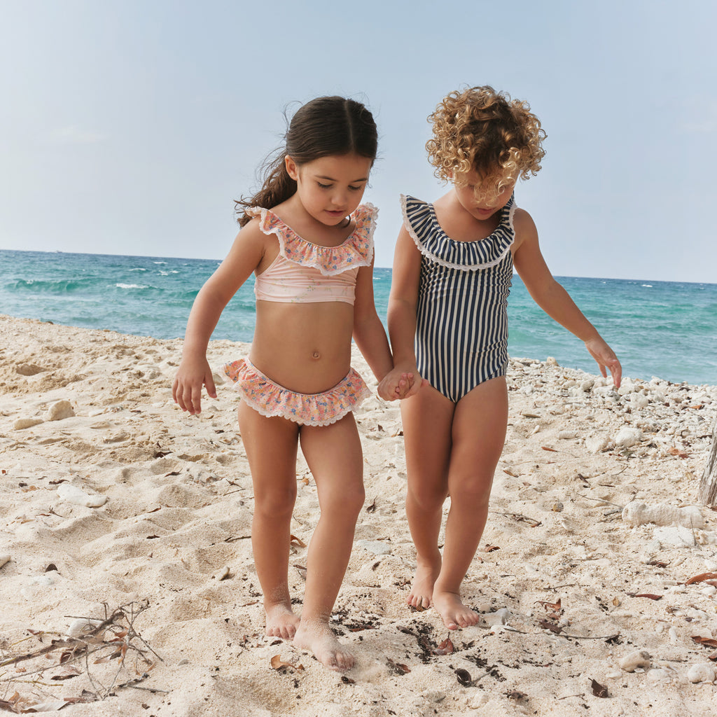 Schöner Badeanzug mit Druck für Kinder.- Figurbetont- Spitzen-Details- Breite Rüsche am Ausschnitt und an den Schultern- Tieferer Schnitt im Rücken- Schulterriemen, die sich am Rücken kreuzenWheat's Badebekleidung ist perfekt für einen Tag am Strand oder im Schwimmbad. Unsere Badebekleidung besteht hauptsächlich aus recyceltem Polyester und ist angenehm für Ihr Kind zu tragen und sich darin zu bewegen.Der Stil bietet UV 40+/UPF 40+ Schutz. Der Badeanzug kann problemlos mit einem unserer leichten Kleider oder Hemden kombiniert werden, um den niedlichen Sommerlook zu vervollständigen.So pflegen Sie Ihre Badebekleidung- Waschen Sie Ihre Badebekleidung immer nach Kontakt mit Chlor- oder Salzwasser- Befolgen Sie das Pflegeetikett