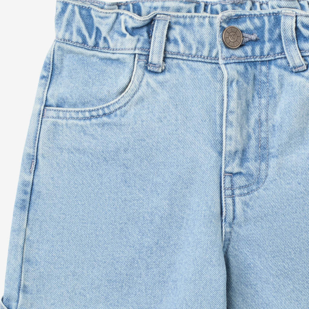 Denimhosen aus weicher Bio-Baumwolle für Kinder. - Verstellbarer Gummizug in der Taille- Seitentaschen- Leistentaschen hinten- Reißverschluss und KnopfWheat's Hosen sind ein wesentlicher Bestandteil der täglichen Garderobe Ihres Kindes mit einem praktischen Gummizug in der Taille und Seitentaschen. Die lockere Passform macht die Hosen angenehm zu tragen und lässt sich leicht mit einem unserer T-Shirts, Oberteile oder Strickwaren für den Alltag kombinieren. Sie eignen sich auch perfekt für besondere Anlässe, bei denen Sie sie mit einem Hemd oder einer Bluse aufpeppen können, um den schicken Look zu vollenden.