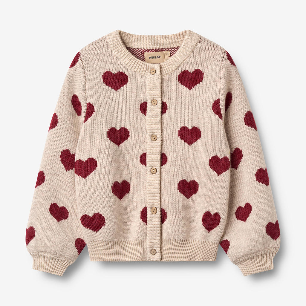 Langärmelige Strickjacke aus weicher Merinowolle für Kinder.- Reguläre/lockere Passform- Knopfleiste vorne- Rippbündchen am Halsausschnitt, an den Ärmeln und am Saum- Gestricktes HerzmusterDie Strickwaren sind ein unverzichtbarer Begleiter für die wechselnden Jahreszeiten. Sie sind weich, angenehm zu tragen und kratzen nicht. Unsere Strickjacken haben einen klassischen Look mit einer entspannten Passform, die sich mühelos mit einer Hose oder über einem Kleid stylen lässt – perfekt für jedes Wetter und jeden Anlass. Sie eignet sich zudem ideal als zusätzliche Schicht unter einer Jacke.