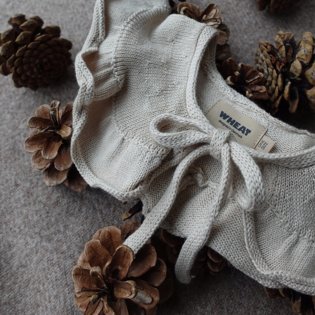 Eleganter Strickkragen mit Spitzendetails aus weicher Bio-Baumwolle.- Feine Strickdetails- BindeschlussWheats süßer Strickkragen hat eine perfekte Passform und ist angenehm zu tragen. Dank des Bindverschlusses vorne lässt er sich leicht an- und ausziehen. Er lässt sich wunderbar mit unseren Kleidern, Blusen oder Hemden kombinieren und verleiht jedem Outfit einen festlichen Touch.
