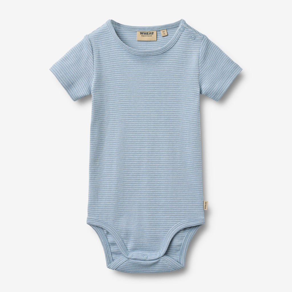 Kurzärmliger Body mit Streifen aus weicher Biobaumwolle für Babys.- Kurzärmlig- Druckknöpfe an Schulter und im Schritt- GestreiftWheat's Bodys sind unisex und ein echtes Must-have im Kleiderschrank Ihres Babys, da sie entweder alleine getragen werden können oder als zusätzliche Schicht unter Alltagskleidung dienen. Die Bodys haben entweder Druckknöpfe an der Schulter oder Knöpfe am Hals für mehr Komfort beim Ankleiden Ihres Babys. Der Body verfügt auch über Druckknöpfe am unteren Ende, was es Ihnen erleichtert, die Windel Ihres Babys zu wechseln.