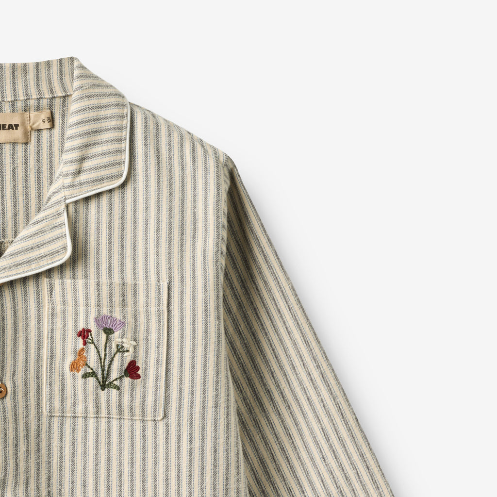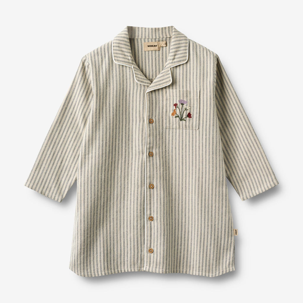 Bequemes gestreiftes Nachthemd aus weicher Bio-Baumwolle für Kinder.- Normale Passform- Kragen mit Paspelierung- Brusttasche- Knopfleiste bis zur Mitte- Abgerundeter Saum- GestreiftWheats süßes und weiches Nachthemd ist angenehm zu tragen und perfekt für die kalten Herbst- und Winternächte. Das Nachthemd hat einen niedlichen Kragen und einen bequemen, oversized Hemd-Look. Die halblange Knopfleiste erleichtert das An- und Ausziehen.