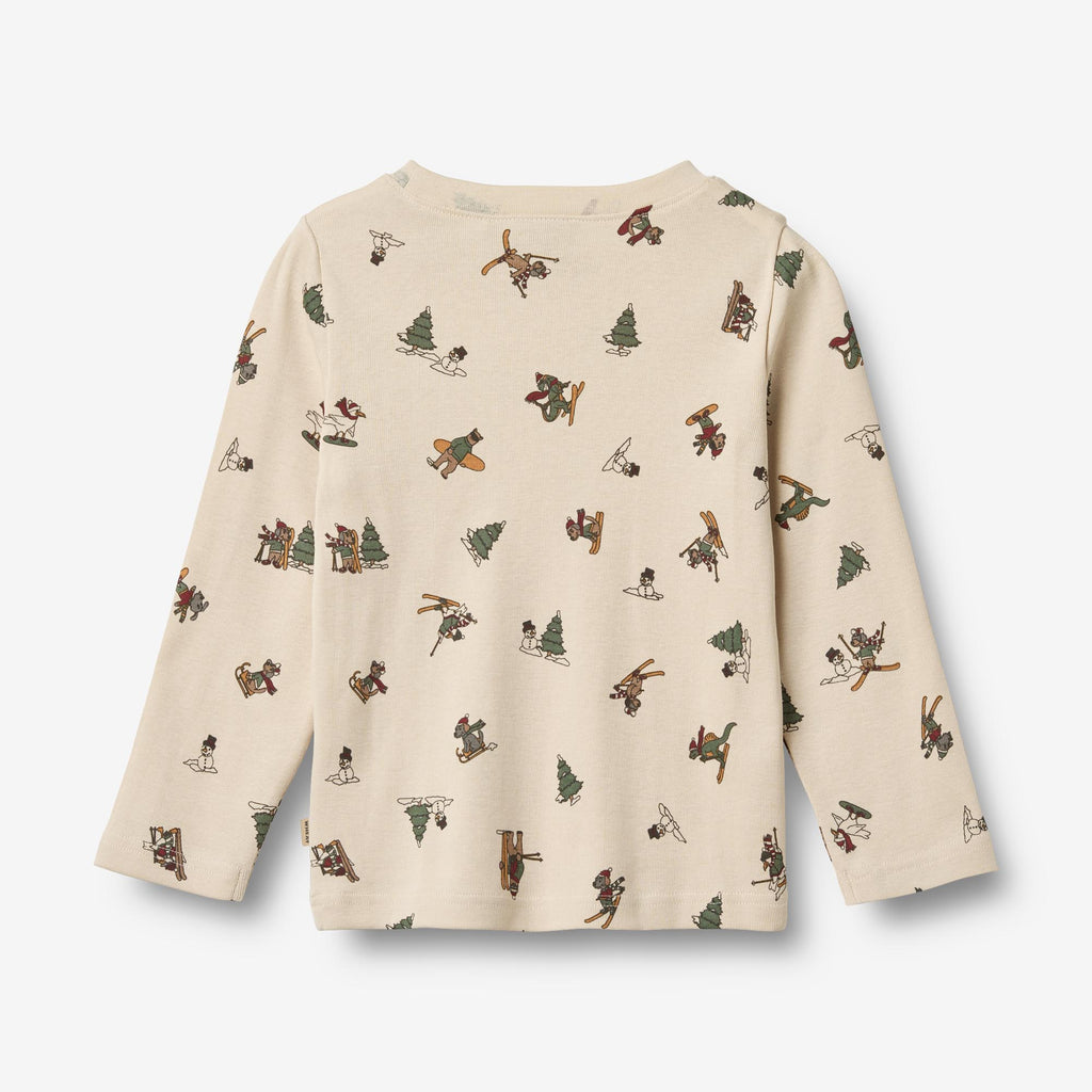Gemütlicher Schlafanzug mit Print aus weicher Bio-Baumwolle für Kinder.- Langarmshirt mit Rippkragen- Hose mit weichem Gummibund- Rippbündchen an Ärmeln und Beinabschlüssen- Signature-PrintUnsere süße und weiche Nachtwäsche ist besonders bequem und perfekt für kalte Herbst- und Winternächte. Das Set besteht aus einem passenden Shirt und einer Hose mit einem wunderschönen, handgezeichneten Print, entworfen von Wheats hauseigenem Designteam.