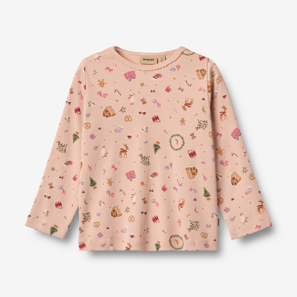 Gemütlicher Schlafanzug mit Weihnachtsprint aus weicher Bio-Baumwolle für Kinder.- Langarmshirt mit Picot-Details am Ausschnitt- Hose mit weichem Gummibund- Wheat Signature-PrintDie süße und weiche Nachtwäsche ist besonders bequem und ideal für kalte Herbst- und Winternächte. Das Set besteht aus einem passenden Shirt und einer Hose mit einem wunderschönen, handgezeichneten Print, entworfen von Wheats hauseigenem Designteam.