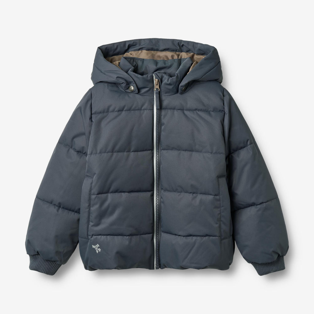 Steppjacke mit abnehmbarer und verstellbarer Kapuze für das Kind.- Reguläre Passform- Abnehmbare und verstellbare Kapuze- Rippsturm-Manschetten- Sichtbarer Reißverschluss vorne mit Blende darunter- Leistentaschen- Reflektoren- Futter in KontrastfarbeWheat's Steppjacke mit technischer Polsterung ist perfekt für die vielen kalten Herbst- und Wintertage. Sie ist so konzipiert, dass sie eine hohe Strapazierfähigkeit und Komfort bietet, da sie wasser- und windabweisend, schmutzabweisend und leicht zu reinigen ist. Die Jacke hat ein einfaches und klassisches Aussehen mit praktischen Details wie abnehmbarer und verstellbarer Kapuze, Sturmmanschetten und Leistentaschen.Bitte beachten Sie, dass die Steppstile keine getapten Nähte haben und daher nicht vollständig wasserdicht sind.