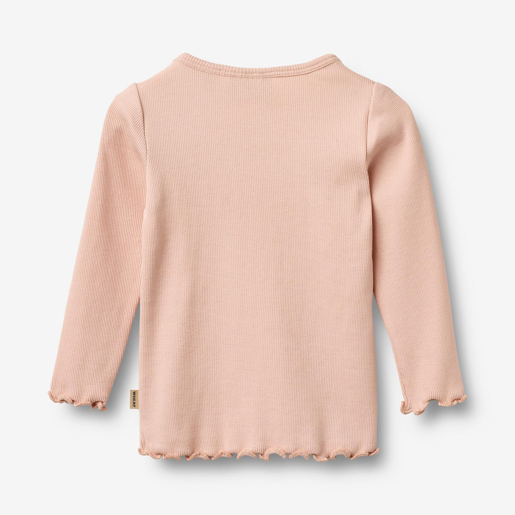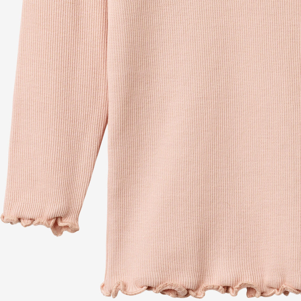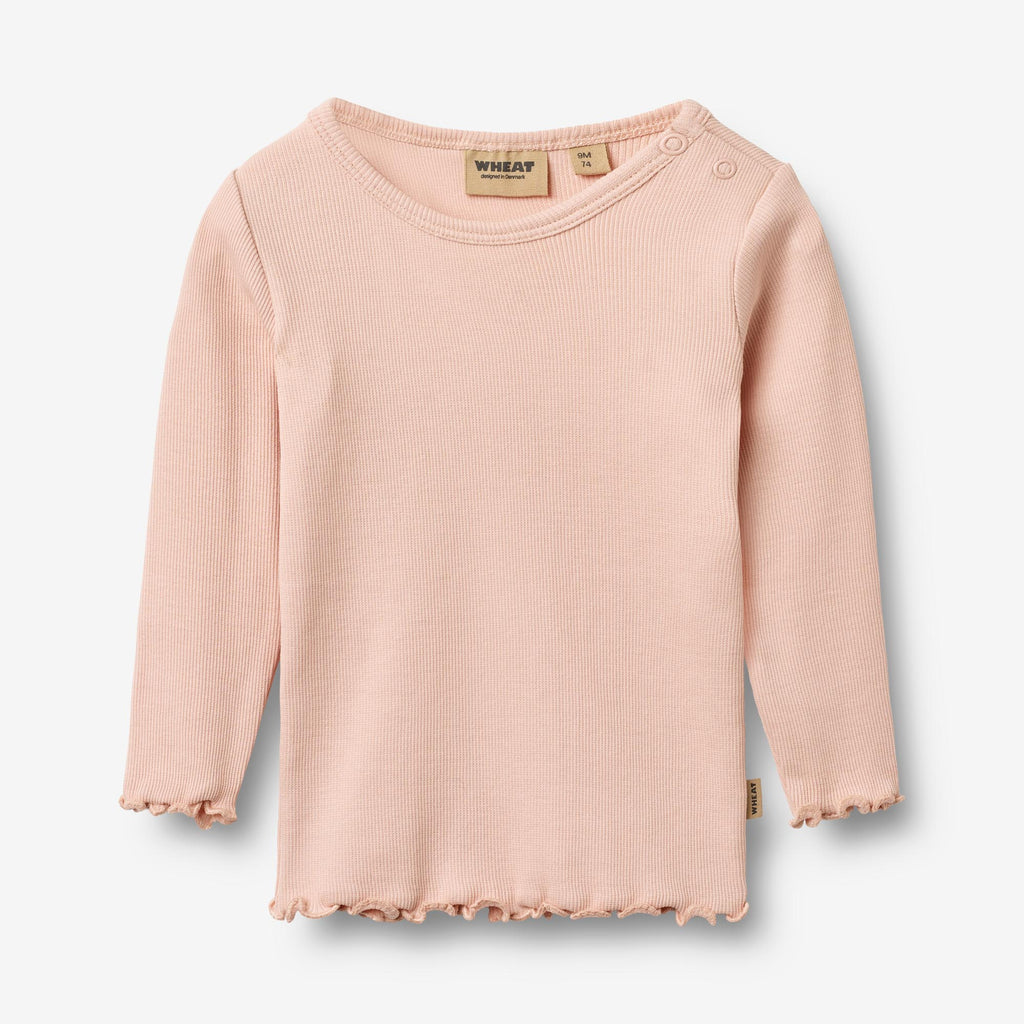 Langärmeliges Basic-T-Shirt aus weicher Bio-Baumwolle für Babys.- Anliegend und dehnbar- Overlock-Nähte an den Bündchen und am unteren Saum- Druckknöpfe an der Schulter- Gerippte StrukturWheat's T-Shirts sind ein unverzichtbares Element in der Babygarderobe, da die T-Shirts weich und angenehm zu tragen sind. Es hat Druckknöpfe an der Schulter, was es Ihnen erleichtert, Ihr Baby anzuziehen. Sie können problemlos mit einer Leggings und einem Strickoberteil je nach Wetter und Anlass gestylt werden. Sie sind auch perfekt als zusätzliche Schicht unter einem Kleid oder Latzhosen an kühleren Tagen.