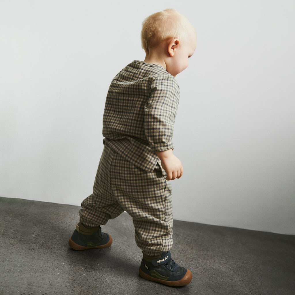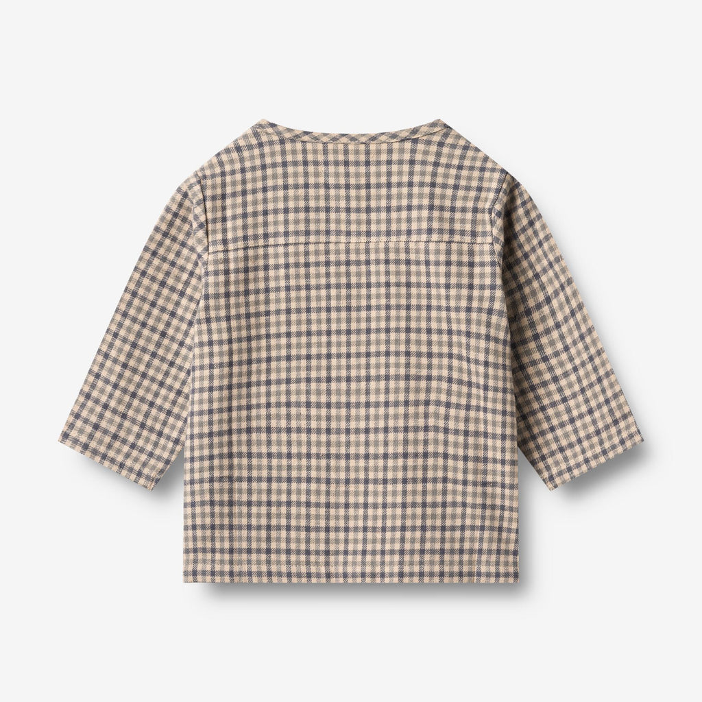 Langärmeliges kariertes Hemd aus weicher Bio-Baumwolle für Ihr Baby. - Reguläre Passform- Mandarin-Kragen- Knöpfe vorne- Kariertes GewebeWheats Hemden sind unisex und eignen sich perfekt für die vielen besonderen Anlässe und gemütlichen Tage während der Herbst- und Wintersaison. Das Hemd verleiht dem Outfit einen klassischeren Look und Sie können es leicht mit einer Hose und einem Strick kombinieren, um den Look zu vervollständigen.