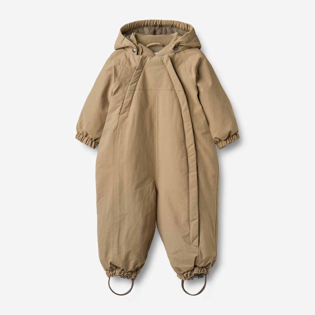 Praktischer Schneeanzug aus atmungsaktivem und wasserdichtem Stoff für Ihr Baby. - Reguläre Passform- Gefüttert mit weichem Fleece- Verdeckter Doppelreißverschluss vorne- Abnehmbare und verstellbare Kapuze- Rippsaumkragen- Elastikdetail hinten für eine gute Passform- Verstellbarer Gummizug unter den Füßen- Elastische Bündchen und Beinabschlüsse- ReflektorenDie technischen Schneeanzüge von Wheat sind atmungsaktiv, strapazierfähig und wind- und wasserdicht, um sicherzustellen, dass Ihr Kind auch bei regnerischem und kaltem Wetter warm und trocken bleibt. Sie sind auch schmutzabweisend und daher einfach zu reinigen. Der Anzug ist als Oberbekleidung für den Winter gedacht, da er mit weichem Fleece gefüttert ist, was ihn angenehm für Ihr Kind zu tragen macht. Er verfügt über viele praktische Details wie eine abnehmbare und verstellbare Kapuze und einen Rippsaumkragen, der das Tragen für Ihr Kind angenehm macht. Der Anzug kann komplett aufgezippt und geöffnet werden, damit Ihr Kind problemlos hineinschlüpfen kann.