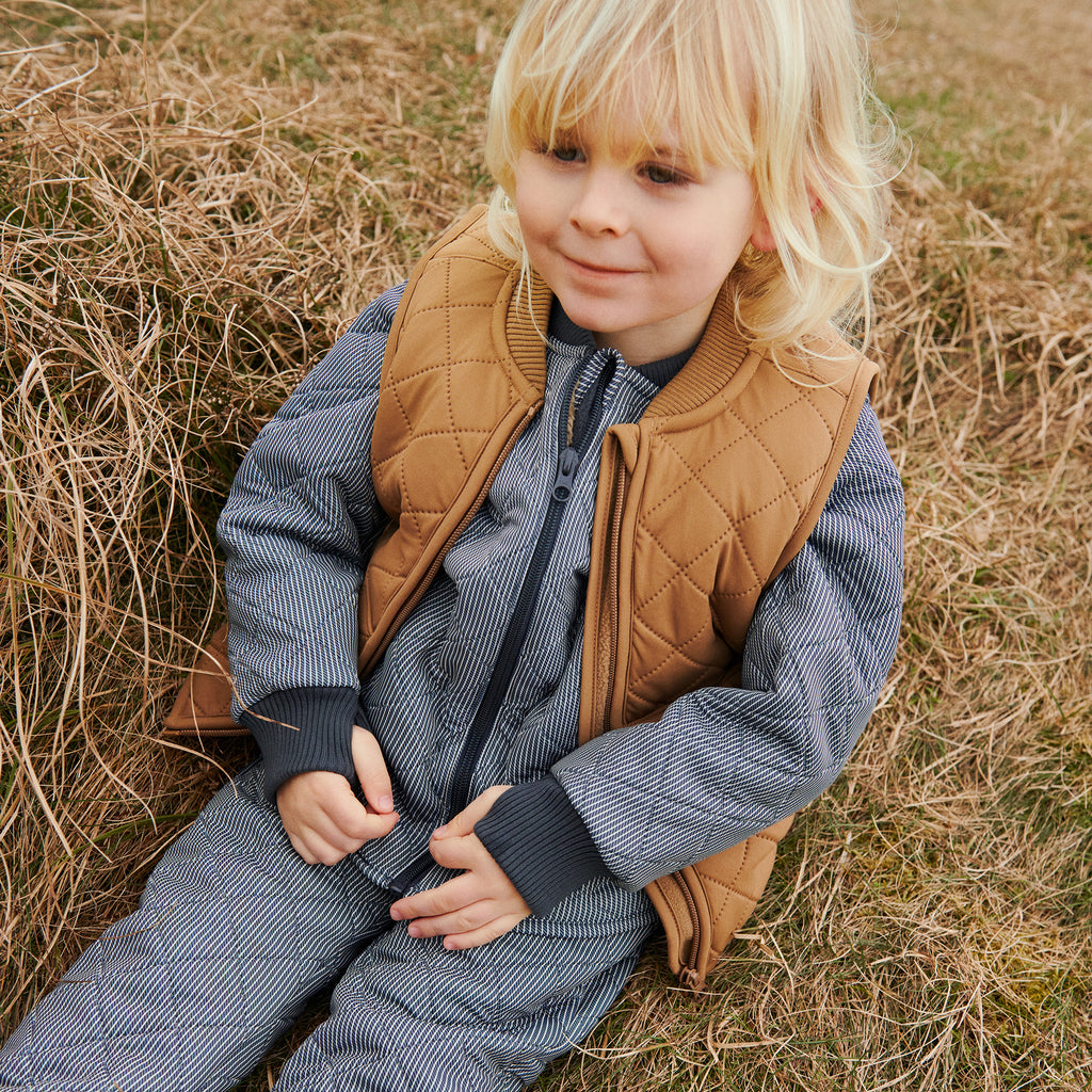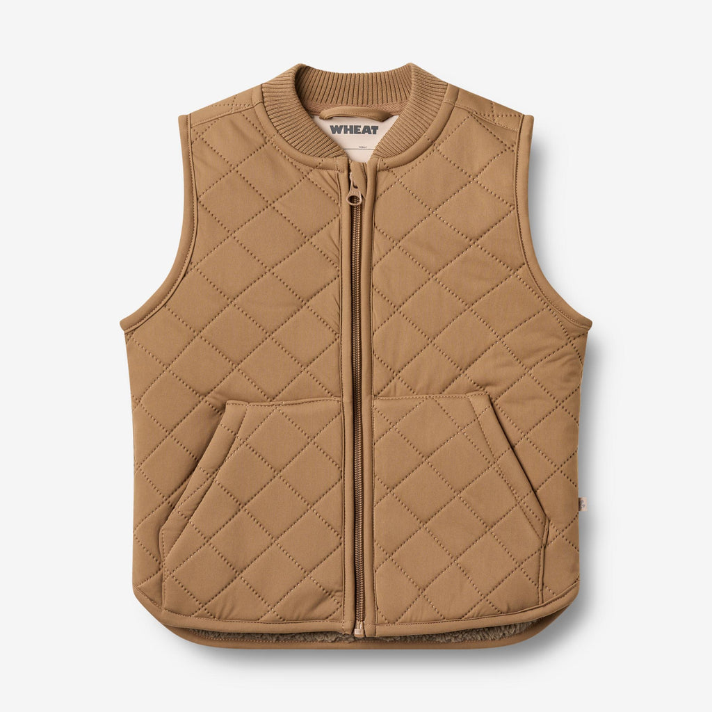 Unsere gemütliche thermo-gefütterte Weste für Kinder. - Regular Fit - Vollständig mit Fleece gefüttert - Rippenkragen - Schultern nach vorne verlagert an der Vorderseite - Schnittlinie hinten - Kängurutaschen - Reißverschluss mit Kinnschutz an der Knopfleiste - Reflektierendes Abzeichen hinten - Einfassungen mit kontrastierendem Druck Wheat's beliebte Thermo-Kleidung für Kinder ist ein echter Alltagsfavorit, da das weiche und leichte Material es angenehm macht, sich zu bewegen und zu spielen. Die Thermo-Weste wird zu 100% aus recyceltem Polyester hergestellt und kann als gemütliche Schicht drinnen und als praktische Übergangsjacke im Freien verwendet werden. Sie ist nicht wasserdicht, aber wasserabweisend und eignet sich für das feuchte Herbstwetter. Wheat's Thermo-Weste kann problemlos mit einem Strick oder einer anderen Jacke darunter gestylt werden, um einen coolen Schicht-Look zu kreieren.