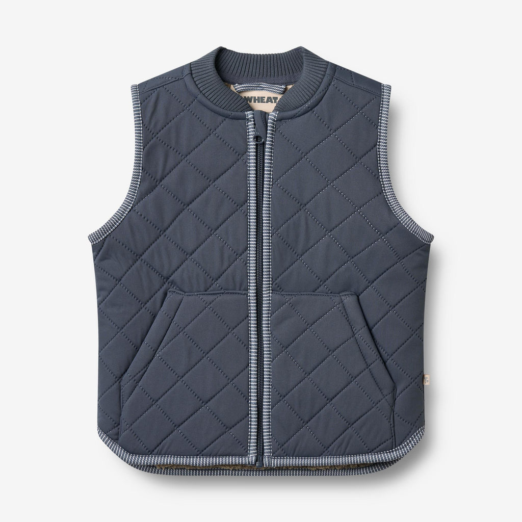 Unsere gemütliche thermo-gefütterte Weste für Kinder. - Regular Fit - Vollständig mit Fleece gefüttert - Rippenkragen - Schultern nach vorne verlagert an der Vorderseite - Schnittlinie hinten - Kängurutaschen - Reißverschluss mit Kinnschutz an der Knopfleiste - Reflektierendes Abzeichen hinten - Einfassungen mit kontrastierendem Druck Wheat's beliebte Thermo-Kleidung für Kinder ist ein echter Alltagsfavorit, da das weiche und leichte Material es angenehm macht, sich zu bewegen und zu spielen. Die Thermo-Weste wird zu 100% aus recyceltem Polyester hergestellt und kann als gemütliche Schicht drinnen und als praktische Übergangsjacke im Freien verwendet werden. Sie ist nicht wasserdicht, aber wasserabweisend und eignet sich für das feuchte Herbstwetter. Wheat's Thermo-Weste kann problemlos mit einem Strick oder einer anderen Jacke darunter gestylt werden, um einen coolen Schicht-Look zu kreieren.