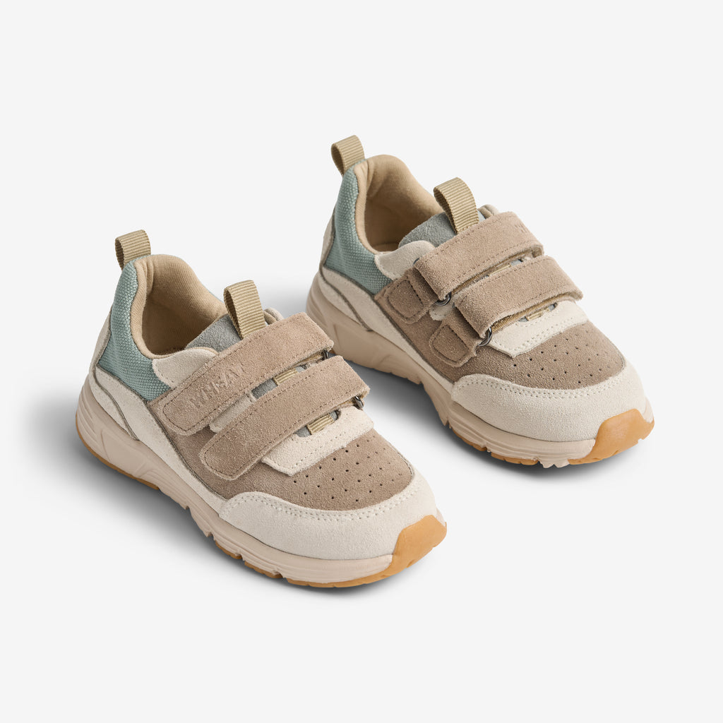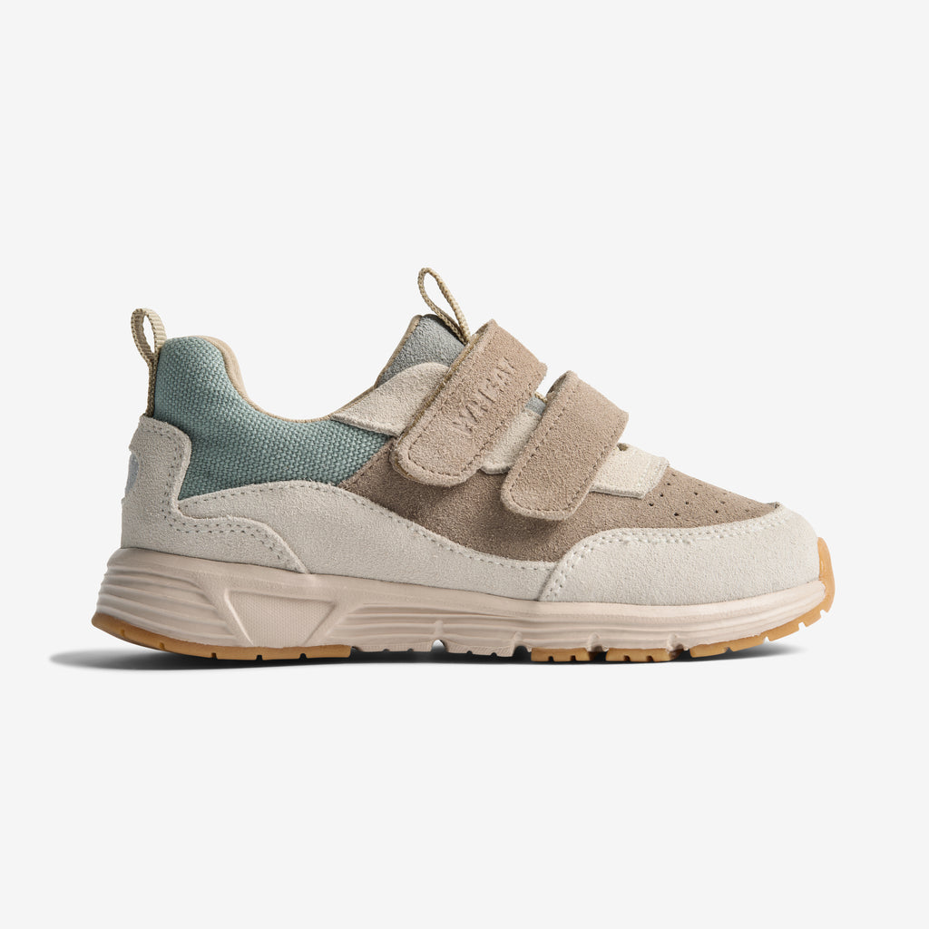 Leichter Turnschuh mit Klettverschluss für Kinder. - Leichter Turnschuh- Zwei Klettverschlüsse- LWG-zertifiziertes Leder- Signiertes bedrucktes organisches Baumwollfutter- EV- und Gummisohle- Farbige DetailsDieser sportliche leichte Turnschuh verfügt über zwei verstellbare Klettverschlüsse über dem Fuß, um eine gute Passform zu gewährleisten. Der Turnschuh ist aus einer Kombination von LWG-zertifiziertem Wildleder und atmungsaktivem Textilmaterial gefertigt. Die Innensohle ist aus Latex gefertigt, einem natürlichen Material, das eine hohe Federung für angenehme Schritte bietet. Das Latex ist mit weicher Baumwolle überzogen. Die Sohle ist leicht und besteht aus zwei Komponenten. Die Zwischensohle besteht aus einem sehr leichten Phylon-Material, während die Laufsohle aus Gummi für guten Halt und Traktion besteht. Der Stil ist unisex und in seinen Größen normal. Empfohlene Wachstumszugabe: 1-1,5 cmInnere MessungGröße 24 = 16,4 cmGröße 25 = 16,8 cmGröße 26 = 17,2 cmGröße 27 = 17,8 cmGröße 28 = 18,4 cmGröße 29 = 19,0 cmGröße 30 = 19,7 cmGröße 31 = 20,2 cmGröße 32 = 20,8 cmGröße 33 = 21,3 cmGröße 34 = 22,0 cmGröße 35 = 22,7 cm
